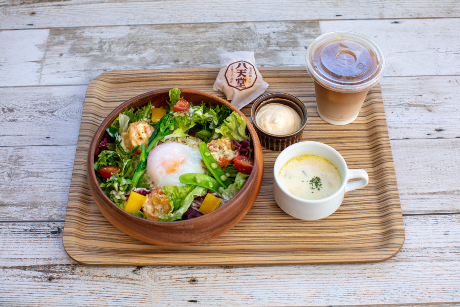 八天堂特製のクリームが一度に楽しめる「わくわくクリームパンケーキ」や「10種のスパイスカレー」そしてお子様向けメニューなどをご用意しております。